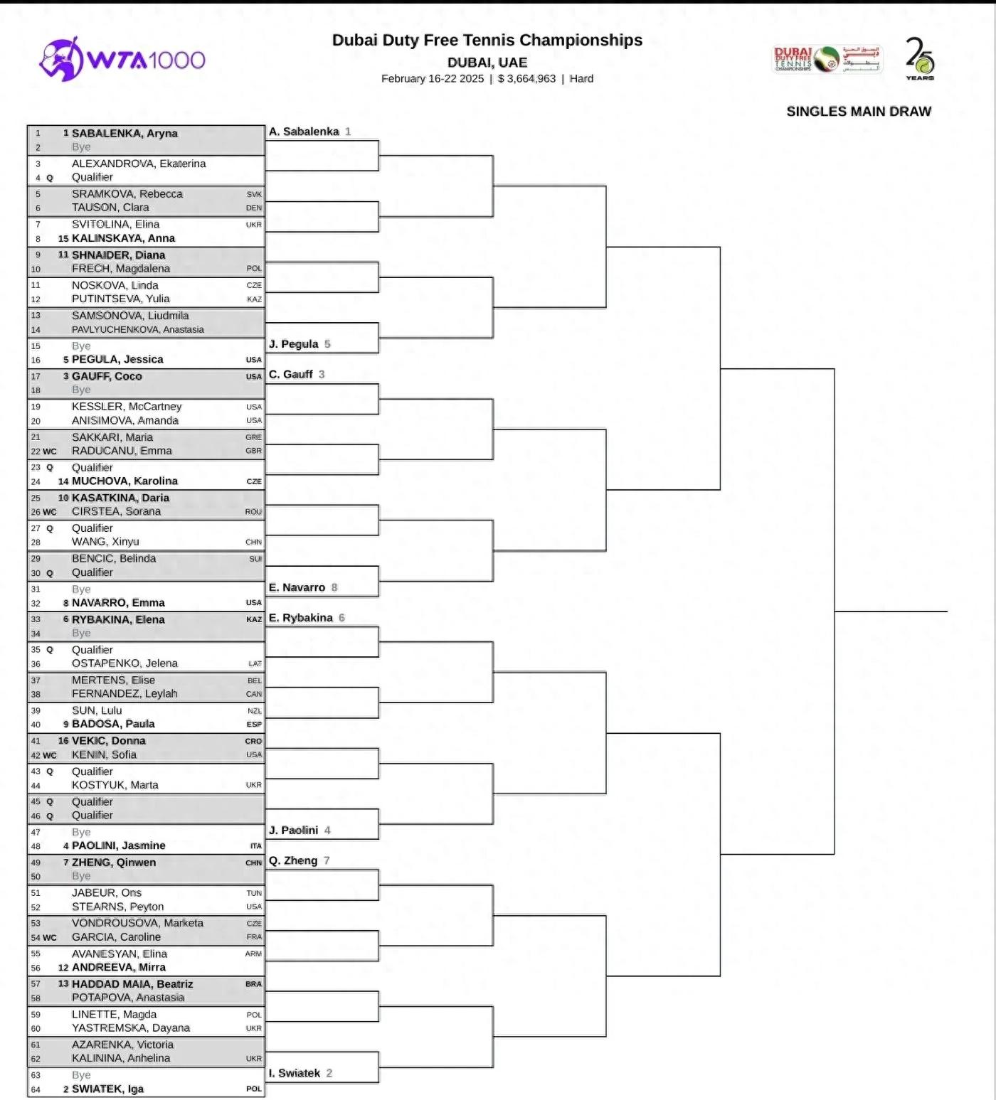 In the just concluded WTA1000 draw ceremony in Dubai, the details of the sign-off form are as follows.