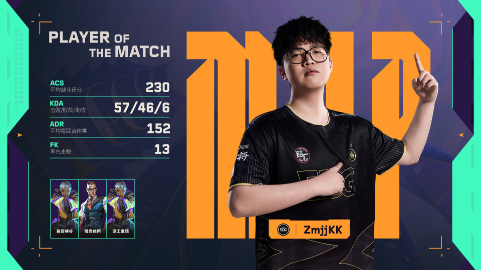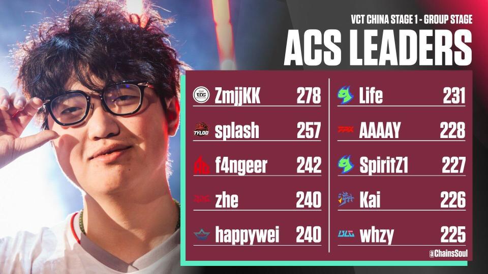 Zmjjkk winning this Regular Season MVP isn't just about star power—it reflects his genuine dominance in the CN region. Returning to CN competition, he seems to operate on a different level, delivering all kinds of plays and highlights at full intensity. His ACS (Average Combat Score) tops the region, followed by TYL's Splash and AG's f4ngeer in second place. Looking forward to Zmjjkk's performance in Beijing next!