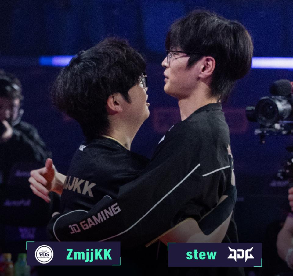 Especially in the previous match against JDG, he led the team to a reverse sweep from a 1-0 deficit—that's the star effect! Whenever he's on the field, opponents have to adapt. Facing a sniper master and a stable core, they must adjust. Although JDG's Stew was also outstanding, the team fell just short in overtime, where EDG secured the win, and Zmjjkk shared a respectful embrace with his rival.