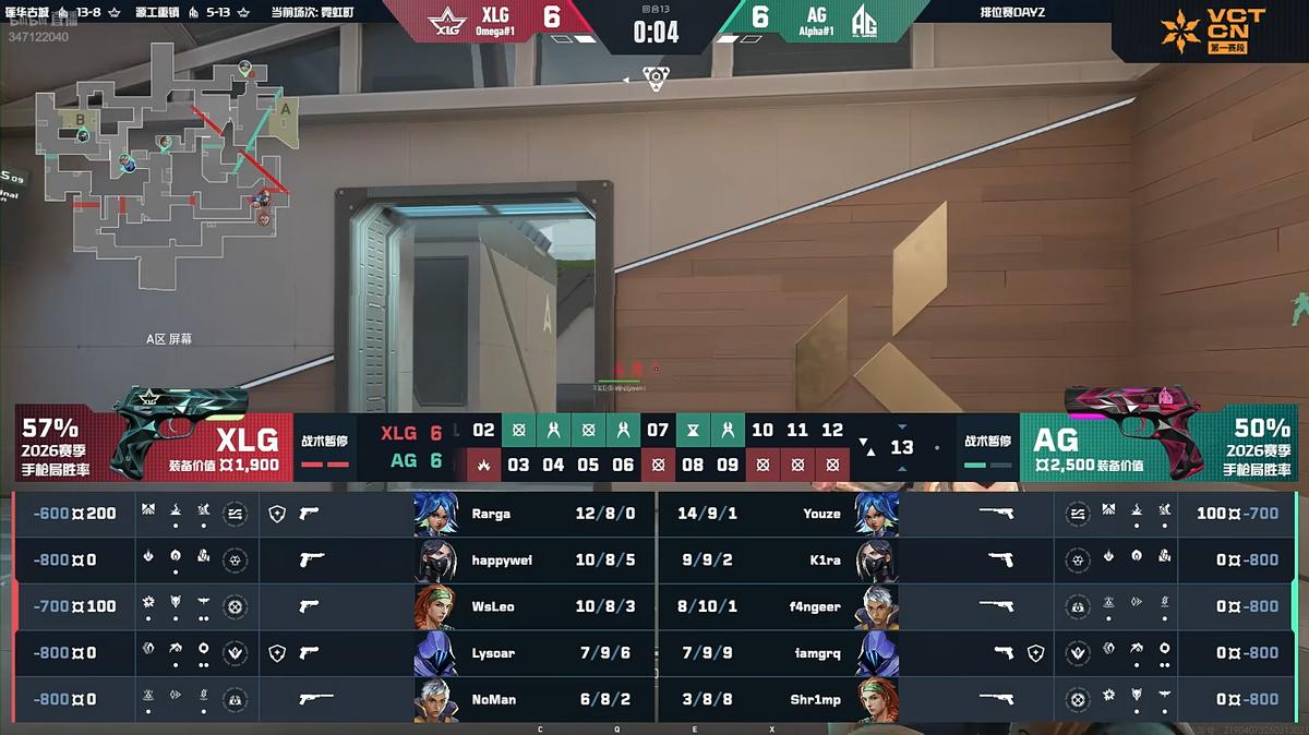 In the final round of the first half, WsLeo won the clutch, bringing the score to AG 6 - 6 XLG.