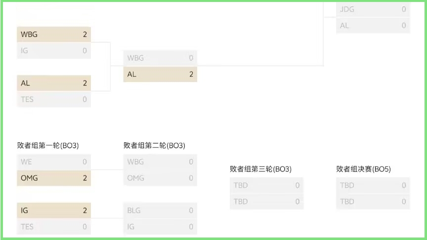 WBG's opponent is OMG, and this match should have little suspense. If both WBG and BLG win, they will meet in the lower bracket semifinals. The winner will challenge the loser of the match between AL and JDG. Considering BLG's current form, they should be able to emerge from the lower bracket and secure a spot in the Oil Cup. Both WBG and AL have been in a slump recently. If they encounter BLG, it seems they won't be able to withstand even a single confrontation.