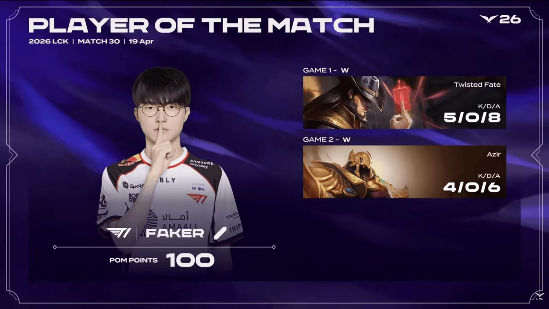 The second week of the second stage in the LCK region has also concluded. T1 easily defeated KRX 2:0, securing their third win in the stage. In this BO3, Faker performed exceptionally well, playing one game as Card Master and one as Sand Emperor, achieving a splendid combined record of 9-0-14 with zero deaths in both matches. Is this really the常规赛 Faker? After losing to DK, T1 must have reviewed extensively, and the players' form has noticeably improved.