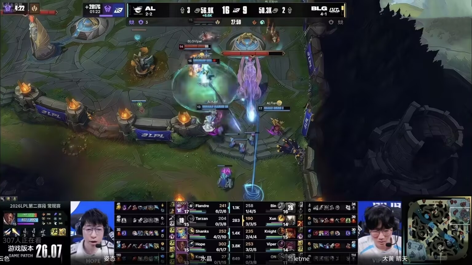Originally leading by over 6K gold, after giving away that one fight, they instantly lost about 3K gold, and BLG also secured a free stopwatch dragon. AL's advantage gradually eroded. Subsequently, BLG obtained the dragon soul, and in a Baron fight wiped AL, directly flipping the game. Hope's move in that moment truly infuriated everyone watching. He played cautiously all game, then suddenly went berserk in the crucial fight, single-handedly throwing away the match.