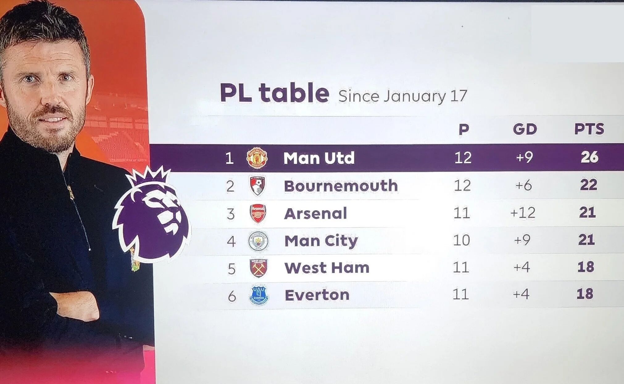 Arsenal, Manchester City, United, Villa, Liverpool, Chelsea, and Brentford currently lead the Premier League standings. If Carrick can defeat all except his own team, calls for him to receive a long-term contract will undoubtedly not be ignored.