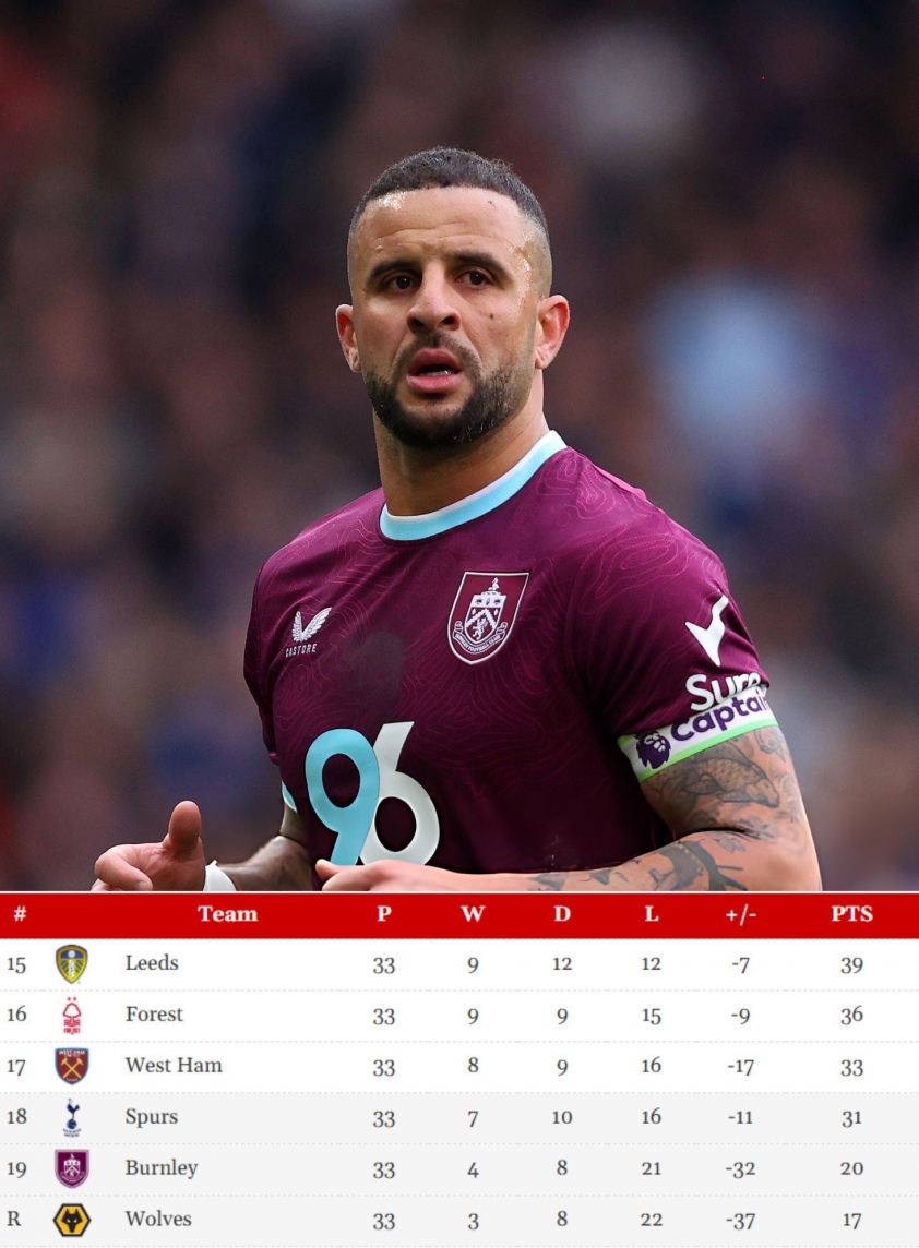 Earlier, West Ham's draw at Crystal Palace, a result that led to Wolves officially being relegated, also dealt a heavy blow to Burnley's situation under manager Scott Parker. This outcome gives West Ham, currently in 17th place, 33 points, which is 13 more than Burnley's mere 20 points.