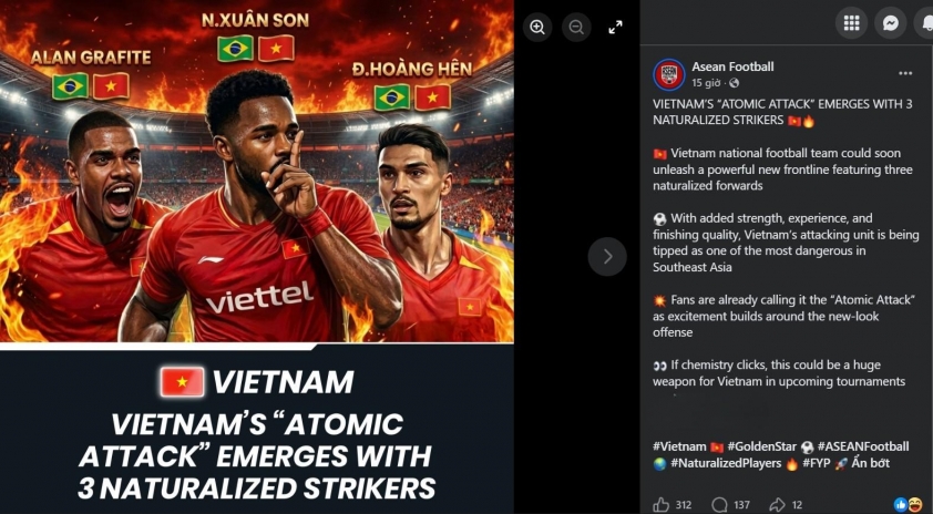 Southeast Asian media is buzzing over the prospect of Vietnam's national team possessing an "atomic attack" with three naturalized forwards, promising to become one of the region's most formidable weapons.