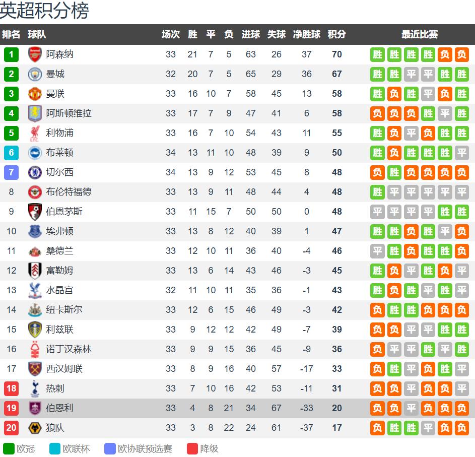 First:The situation of both teams! After 33 rounds of the Premier League, Burnley has 4 wins, 8 draws, and 21 losses, accumulating 20 points and ranking second from bottom, trailing 17th-place West Ham United by as much as 13 points. If they lose this round, they will be relegated four rounds early; Manchester City has 20 wins, 7 draws, and 5 losses, accumulating 67 points and ranking second, one game behind and trailing top-ranked Arsenal by 3 points, with only one fewer goal difference. This means if Manchester City wins this round by 2 goals or more, they can overtake Arsenal to top the Premier League table. In the last Premier League round, Burnley lost 1-4 away to Nottingham Forest, with 2 draws and 5 losses in the last 7 league matches, showing poor form; Manchester City defeated Arsenal 2-1 at home, regaining the initiative in the title race.