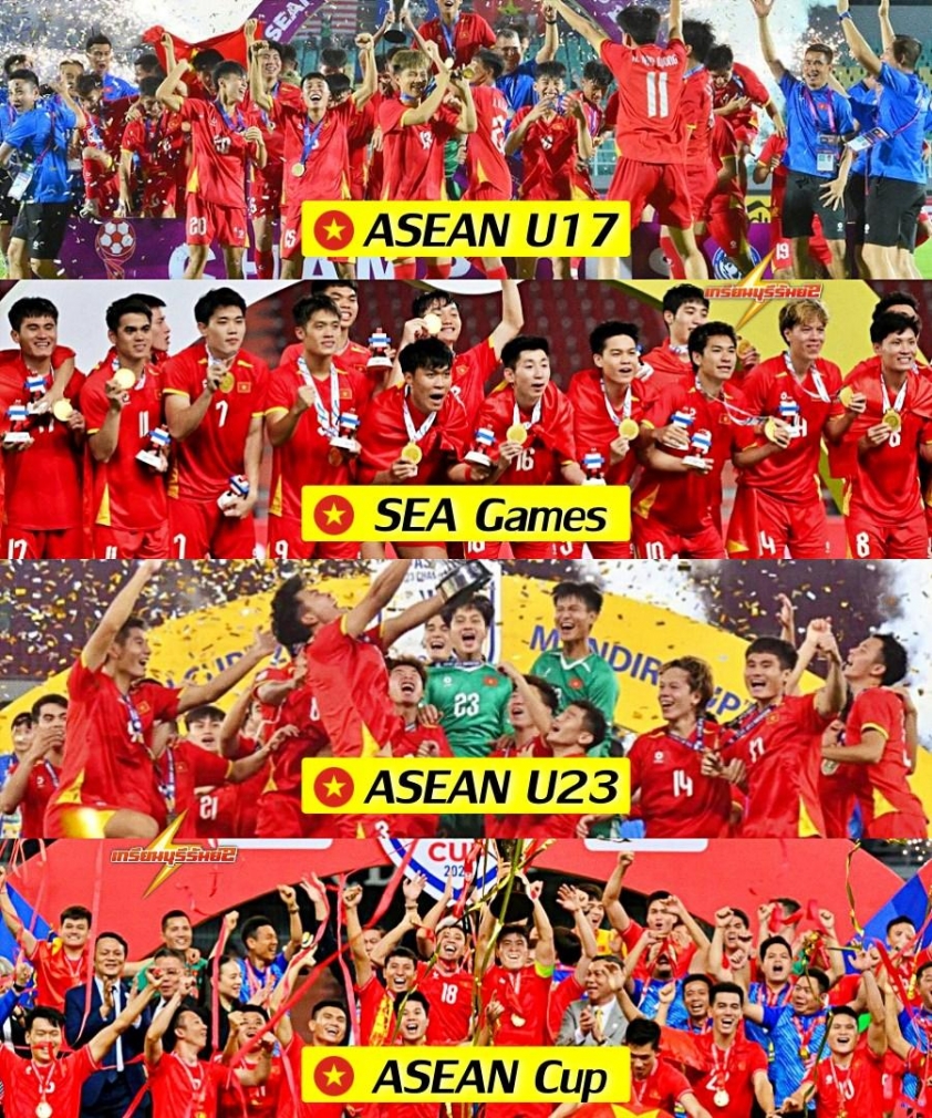 The Thai newspaper also emphasized that Vietnam has "swept all regional titles", from U17, U23 to the national team. Titles such as Southeast Asian U17, SEA Games, Southeast Asian U23, and ASEAN Cup are listed as clear evidence of a rare period of dominance in the history of regional football.